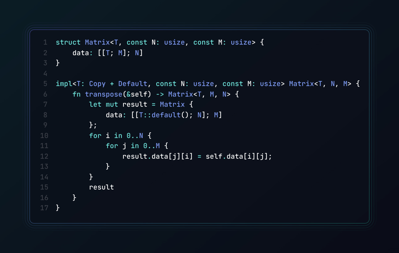 Use Rust's const generics to create compile-time array operations with custom sizes, enabling zero-cost abstractions for numerical computations. This feature allows for generic array sizes checked at compile-time rather than runtime.