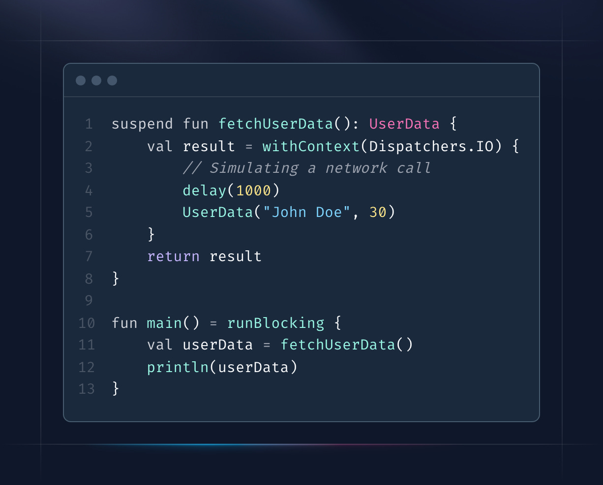 Lightweight: Coroutines are more resource-efficient than threads for handling concurrent operations.